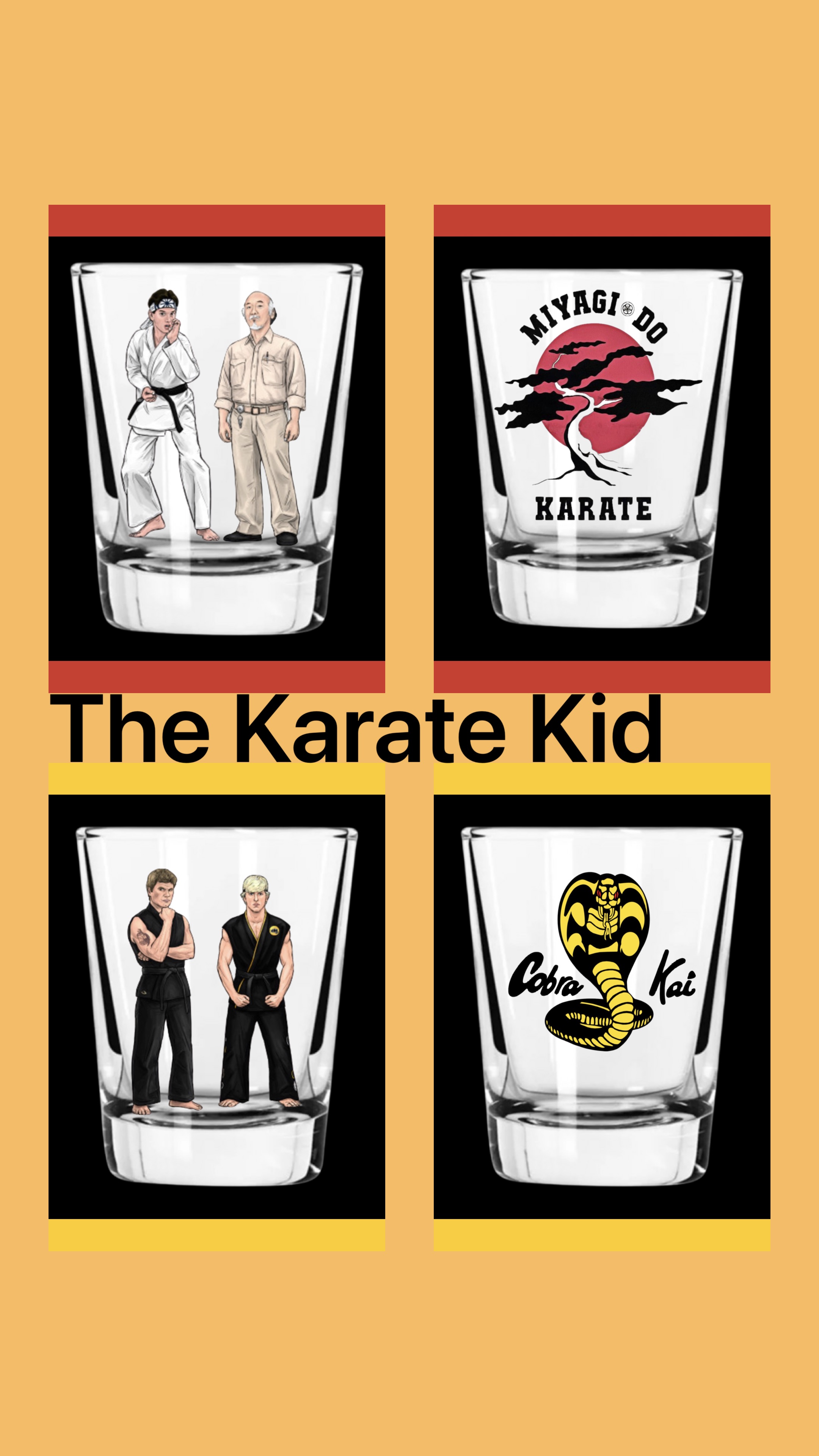 The Karate Kid Movie Shot Glasses SET OF 4 w/ Matching Gift Boxes
